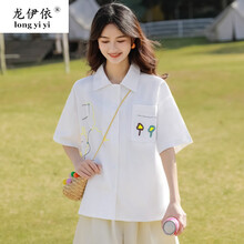龙伊依 2021新款日系学院风白衬衣女字母POLO领短袖衬衫夏少女装流行初中学生高中生 白色 M