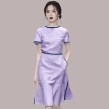 气质女神范粉紫色仙女连衣裙2021夏季新款日系甜美拼接小清新裙子 浅紫色 M