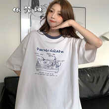 依梵娅夏季女生衣服短袖少女t恤女宽松韩版学生女孩体恤夏装衣服女新款初中生高中生女装半袖上衣女 蓝色 M