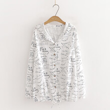 网红同款日系文艺小清新简约满身树叶宽松全棉连帽短外套女长袖衣韩范 白色 树叶款 均码