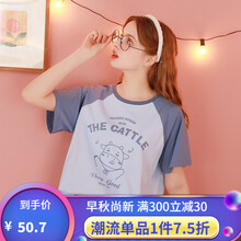 库恩玛维日系撞色减龄短袖T恤女夏2021年新款宽松设计感小众半袖上衣ins潮K75033 天空蓝 M
