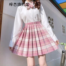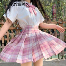 梓态 2021日系jk制服新基础款十到18女短袖套装甜美学生A字半身百褶裙 树莓红茶+白长.袖衬衫+领结 L 90-100