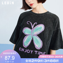 【新品】乐町水洗感蝴蝶短袖2021春季新款双色短袖t恤女宽松 黑色现货 S
