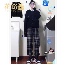 花路酱 个性小众设计感格子薄款/加绒加厚学生休闲宽松直筒格子裤嘻哈街头时尚百搭日系古着裤子ins潮 图片色 薄款 S