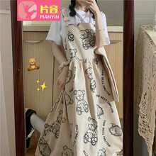 片音连衣裙女学生韩版原宿风夏季背带裙子女夏天学生衣服2021新款初中生高中生少女夏装日系高腰显瘦中 图片色套装 L