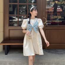 儒善缘 泡泡袖连衣裙女装夏季2021新款法式初恋系可爱日系小个子娃娃裙子 杏色裙子 均码