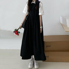 韩版日系中长款背带连衣裙女学生吊带裙夏季单装 【套装】黑色背带裙+短袖衬衣 L 【关注店铺送小礼物哦】
