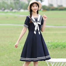海军风连衣裙学院风水手服少女高中初中学生夏装海军领日系jk裙子 藏青色 M