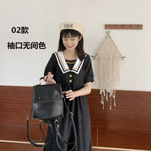学院风日系甜美短袖海军领连衣裙女学生韩版宽松百搭中长裙a字裙 02款短袖黑色 L