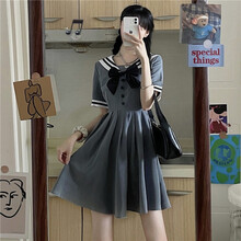 兔系 jk制服女士学院风日常少女学生海军领连衣裙女短款小个子女装简约小清新蝴蝶结百褶裙子女2021新 灰色 S