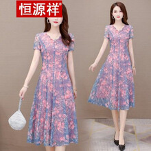 恒源祥新款今年流行甜美碎花连衣裙女夏季夏天修身显瘦雪纺妈妈裙子2021轻奢高端女装 浅蓝色 XL85-105斤左右