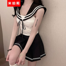 米珀莉两件套套装裙夏款性感连衣裙露肩显瘦jk制服2021新款日系学院风海军领露背衬衣百褶短裙 套装 M
