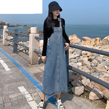 皮尔卡丹旗舰官方掂 大码胖胖遮肉 日系古着减龄牛仔背带裙女学院风大码胖mm韩版宽松显瘦吊带长裙子优选 蓝色 S(建议90-100斤)