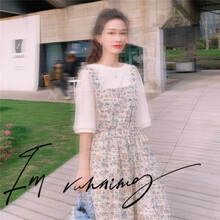 丹贝迪特 连衣裙女套装2021年夏季韩版清新减龄碎花裙小众设计感高级中长裙女日系甜美气质A字裙女 吊带裙+T恤(套装) 请拍正确尺码