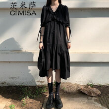 茨米萨夏天赫本风连衣裙少女生夏装2021年新款初中生高中生学生日系森系黑色长裙子 黑色 M