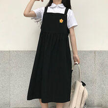 萌姿兰夏季日系学院风连衣裙女学生韩版自然腰显瘦百搭短裙款吊带裙子 黑色裙子送小花 【关注店铺送小礼物】 XL