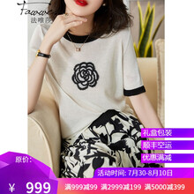 FAWWESA轻奢品牌家日系优雅圆领山茶花冰丝短袖T恤女年夏季新款针织上衣2021年 白色 均码