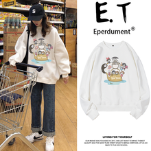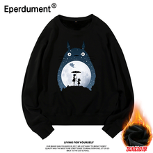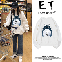 Eperdument 秋冬新款日系宫崎骏卡通龙猫原宿风潮牌卫衣女宽松韩版bf慵懒风学生外套 白色加绒-雨夜 3XL(190高/210斤左右)