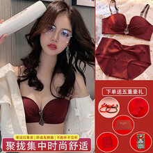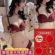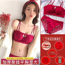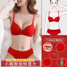 【新品牛年红】绘蔻一百本命年文胸套装小胸聚拢显大结婚新娘内衣女大红婚庆转运性感胸罩无钢圈收副乳红内裤 01 小清新【套装全新升级】 34/75(AB...