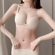法国KJ薄款内衣女小胸聚拢无钢圈文胸收副乳平胸专用胸罩上托无痕bra夏天 灰紫色 75B=34B(配内裤)