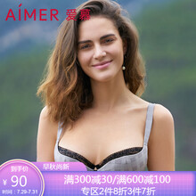爱慕文胸女式内衣醉美英伦3/4薄罩杯蕾丝格纹拼接光面文胸小胸罩女AM132231 黑色格纹 C85
