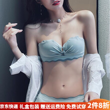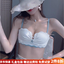 KJ无肩带内衣少女聚拢防滑无钢圈小胸光面隐形文胸罩套装 白色套装 75/34A【舒适防滑】