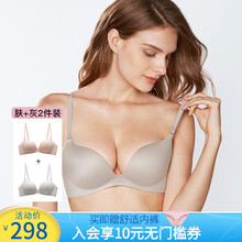 【2件装】曼妮芬宋茜同款无钢圈文胸舒适女薄款小胸无痕收副乳聚拢内衣 2件装 肤+灰调整款加宽侧比 75A