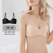 尼亚利无肩带防滑隐形婚纱文胸内衣女3D立体杯聚拢光面无痕裹胸无钢圈少女抹胸式文胸贴胸罩 百搭肤 75A