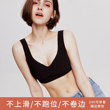 Carey Kay背勾式无痕无钢圈运动睡眠文胸光面深V聚拢舒适乳胶运动内衣背心式少女胸罩 黑色(背扣式) XXL