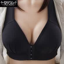 莫代尔文胸前扣式无钢圈内衣女薄款大胸显小收副乳美背文胸胸罩胸罩 黑色 42/95BC通杯