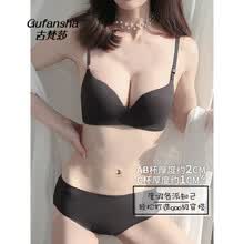法国古梵莎冰丝内衣套装小胸衣文胸罩无钢圈厚模杯聚拢上托无痕光面侧收文胸套装 肤色套装 85/38B