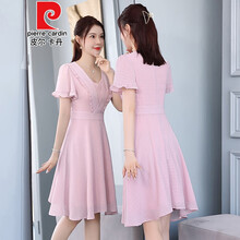 皮尔卡丹敬酒服新娘平时可穿夏季结婚礼服订婚回门便装伴娘小个子连衣裙女针织 粉红色 XL