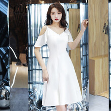 CUF 香港潮牌 白色小礼服裙子女装夏季新款小个子露肩连衣裙平时可穿气质名媛法式生日派对A字裙 白色 L