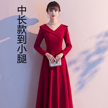 麦斯贝思敬酒服新娘2020新款酒红色平时可穿结婚礼服女显瘦回门衣服秋冬季大合唱团演出服 中长款到小腿的 M 建议96-105斤
