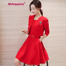 Mrhippies原创女装晚礼服女2020秋季新款生日宴会小礼服裙结婚回门装敬酒服两件套连衣裙潮 大红色 M 90至100斤