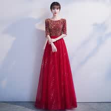 丽佰昕敬酒服新娘2021新款夏季主持人大合唱团演出服装长裙晚礼服女宴会 酒红色 S