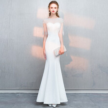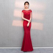 雪宝莲白色晚礼服女2021新款宴会高贵主持人长款高端气质鱼尾名媛连衣裙年会主持人 深红色 S