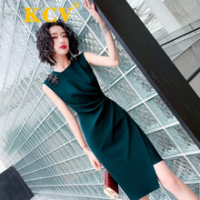 KCV 香港潮牌小个子宴会晚礼服裙女短款主持人连衣裙气质高贵平时可穿高端大气 墨绿无袖带钻 M