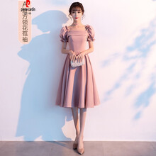 皮尔卡丹法国品牌21年新款粉色伴娘服新款简约大气平时可穿小个子姐妹团晚礼服裙女夏季 粉色A款:中长款 XXXL