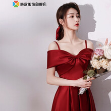 敬酒服新娘大码新娘结婚2021春夏季新款小个子法式缎面精致垂顺简约气质订婚大码礼服裙女大码孕妇可穿 酒红色吊带 4XL
