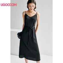 UGOCCAM 【精致同步】仿醋酸吊带裙约会刚需连衣裙晚礼服 黑 S