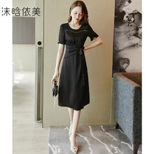 沫晗依美 21夏季新品简约通勤风收腰设计设计感精致气质优雅礼服连衣裙女 黑色 S
