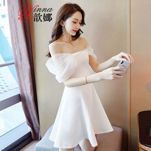 歆娜小个子白色裙女夏2021新款一字肩网纱礼服连衣裙短裙高调风情衣服女干练潮女渡假合身 白色TMQZ199624_美少女治愈系实用水洗海边 S_欧洲站年轻款...