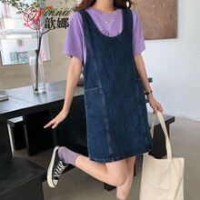歆娜牛仔背带裙女春夏季日系可爱小个子收腰a字长裙款高腰连衣裙裙子潮牌出游中性精致超好看高级文艺舒服 0106深蓝色_帅气居家舒适潮女小妖精超...