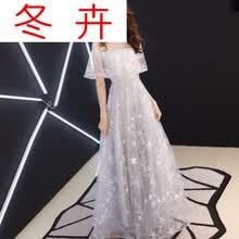 伴娘服女梦幻仙气气质长款高贵显瘦学生姐妹团宴会晚礼服裙连衣裙时髦国潮心机合身显身材 灰色长款_潇洒怀旧欧洲站少女收腰漂亮软妹细腻精致 XS...