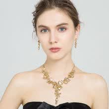 甲状腺遮疤痕项链 装饰项链短款女个性欧美紫色水晶锁骨链耳环套装晚礼服挂件毛衣链SN2609 4#香槟精致 项链耳环一套