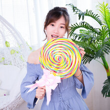 七夕情人节礼物超大棒棒糖礼盒装500g创意七彩彩虹心形波板糖果送女友生日礼物心形巨型特超大号圆形 1000g圆形超大棒棒糖礼盒装