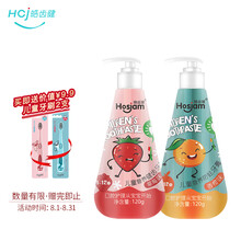 皓齿健Hosjam 1-12岁儿童牙膏套装240g 水果口味液体按压式(草莓+香橙) 木糖醇维E 无氟可吞咽 防蛀固齿护龈