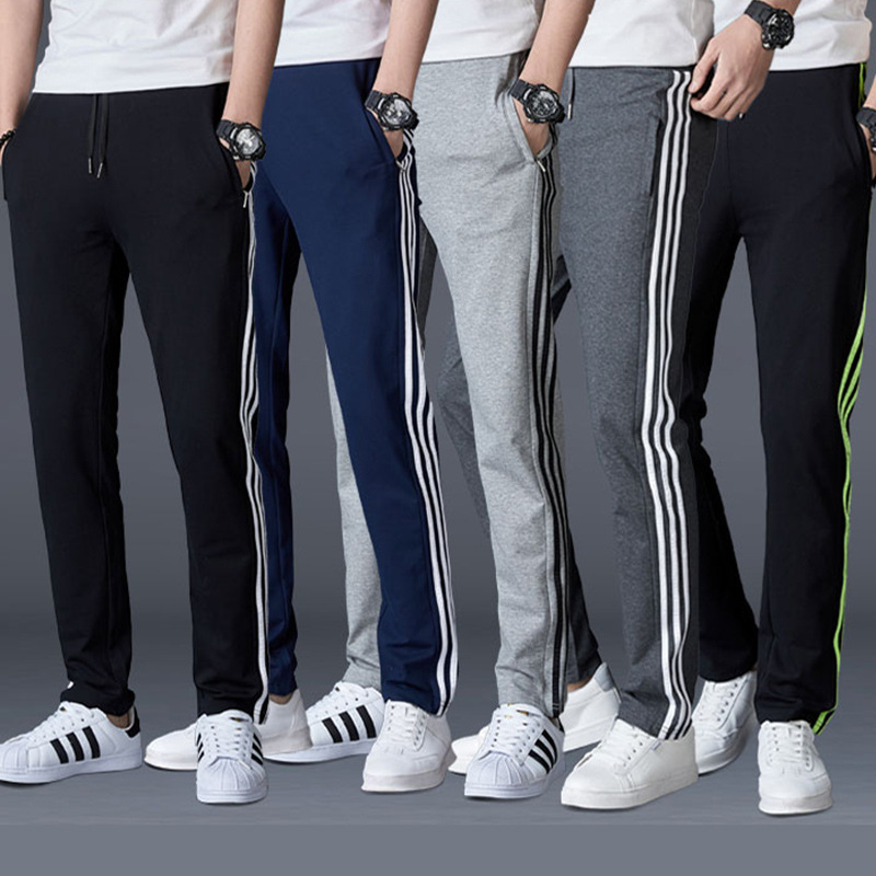 春秋棉纶休闲长裤男士运动卫裤四季健身跑步修身直简男裤透气纯色