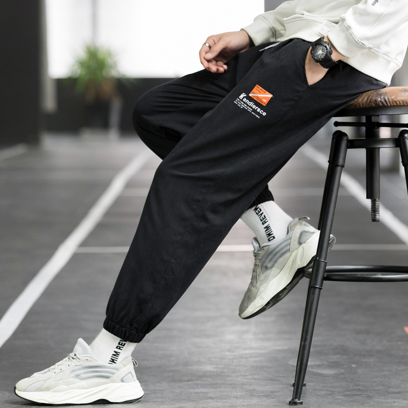 裤子男韩版潮流冰丝长裤束脚卫裤新款春夏季九分时尚运动裤